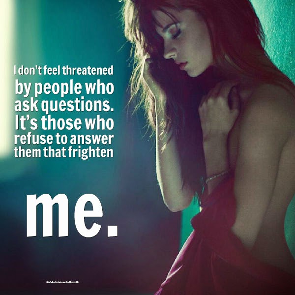I don’t feel threatened by people who ask questions. It’s those who refuse to answer them that frighten me.